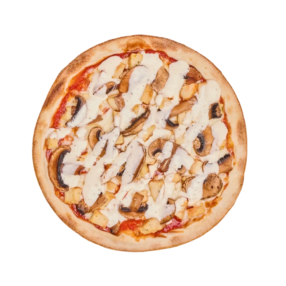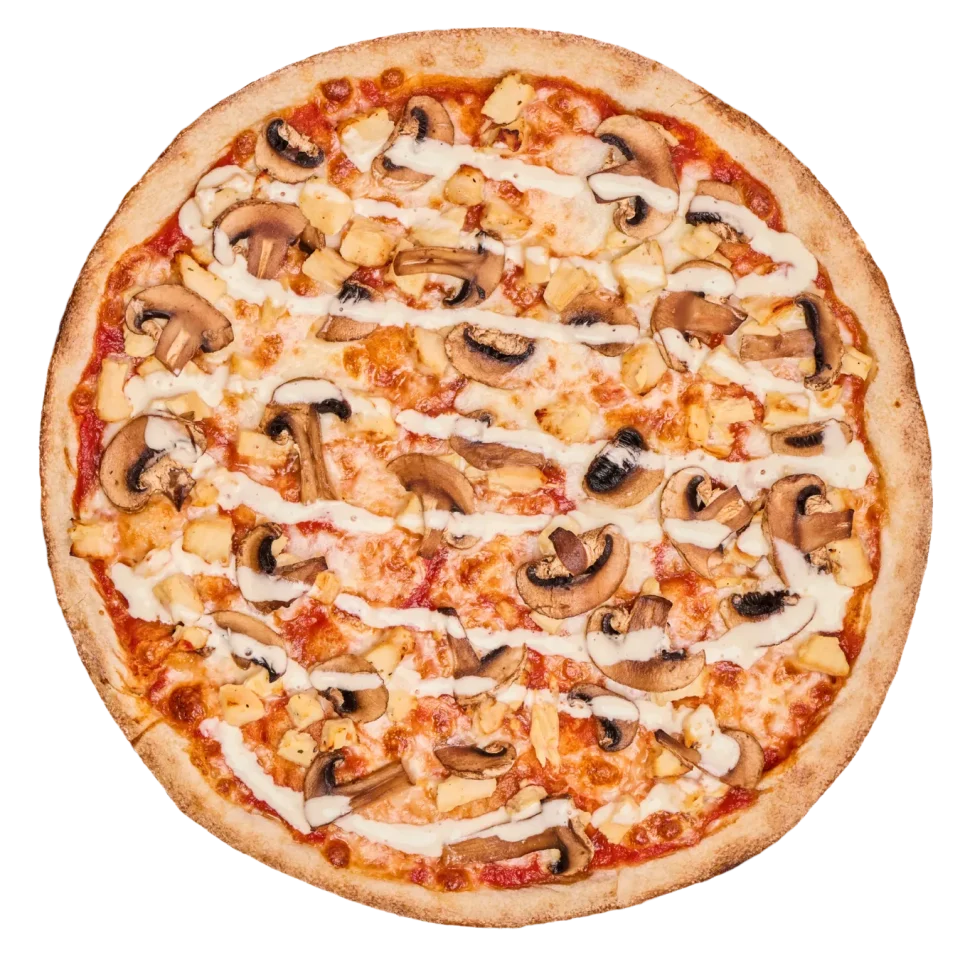 Csirkemell, gomba, fokhagymás majonéz, mozzarella, paradicsomszósz
