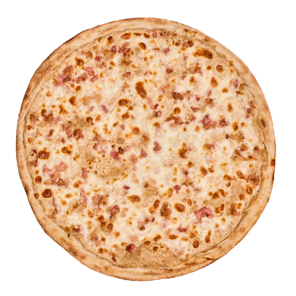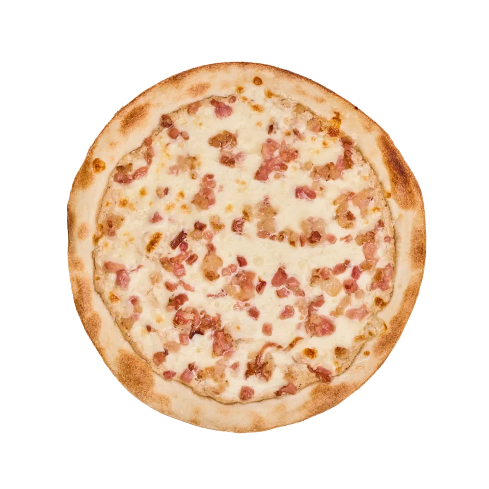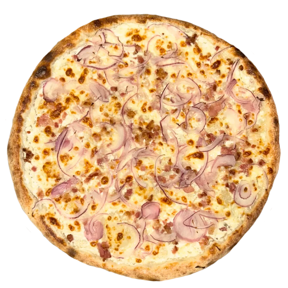bacon, lilahagyma, mozzarella, fokhagymás tejszínes alap